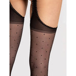 Amore Mio de Fiore est une paire de collants transparents 20 den, élégamment conçus pour imiter des bas à pois avec effet porte-jarretelles. Leur finition coussinet en dentelle, leur transparence délicate et leur jeu de motifs font de ce modèle un atout de séduction raffiné, parfait pour sublimer une tenue du quotidien ou une occasion spéciale.
