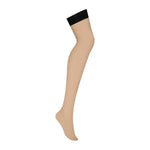 Laissez-vous envoûter par les S814 : des bas ultra-sensuels au tissu beige semi-transparent, rehaussés de larges bandes noires à la cuisse, qui évoquent subtilement l’effet porte-jarretelles. Pensés pour intensifier l’expérience, ils promettent élégance et séduction instantanées.