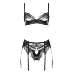 Avec l’ensemble Marilyn, chaque détail respire l’assurance et la sensualité. Composé d’un soutien-gorge, d’un porte-jarretelles structuré et d’un string assorti, cet ensemble mise sur le contraste entre brillance satinée et finesse de la dentelle. Le tout dessine une silhouette affirmée, sensuelle, mais toujours élégante. Pensé pour les femmes qui aiment séduire sans compromis, il combine esthétisme, maintien et confort avec précision.
