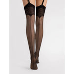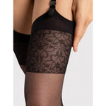 Les Vesper 20 den de Fiore sont des bas autofixants semi-transparents de 20 deniers, qui revisitent le style rétro-chic avec une couture arrière iconique et un top orné d’un motif floral raffiné, imprimé directement sur la bande. Leur finition mate subtile et leur pointe invisible renforcée assurent une élégance discrète et moderne.