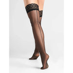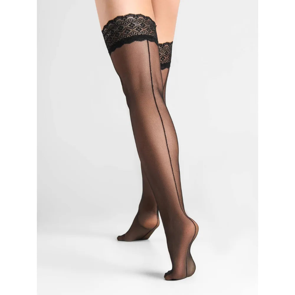 Les Fiore Celia 30 den sont des bas autofixants élégants, déclinés ici en blanc raffiné, dotés d’une couture arrière subtile pour une allure rétro-chic. La bande en dentelle délicate, agrémentée de deux bandes silicone invisibles, assure un maintien confortable et élégant, idéal pour une tenue sophistiquée avec ou sans porte-jarretelles.