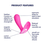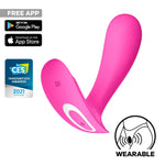 Le Satisfyer Top Secret Connect App est un vibromasseur portable à double moteur, spécialement conçu pour la stimulation simultanée — vaginale/anal et clitoridienne. Discret à porter (taille ≈ 11cm), il permet un pilotage via Bluetooth grâce à l’application Satisfyer Connect, pour un contrôle personnalisé et des expériences à distance.