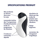 Petit par la taille, grand par les sensations ! Le Satisfyer Orca vous surprendra avec sa double action : des ondes de pression pour une stimulation clitoridienne sans contact et des vibrations intenses pour encore plus de plaisir. Son look épuré en noir et blanc rappelle l’orque… élégant, efficace, et prêt à plonger dans l’extase.