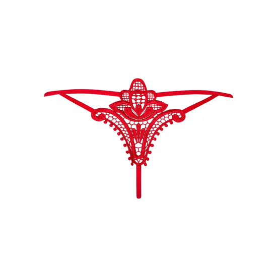 The "Luiza" is an extremely feminine thong designed to combine seduction and comfort. Crafted from refined lace, it features delicate floral patterns, a flattering cut, and a small satin bow at the front for a charming finishing touch.