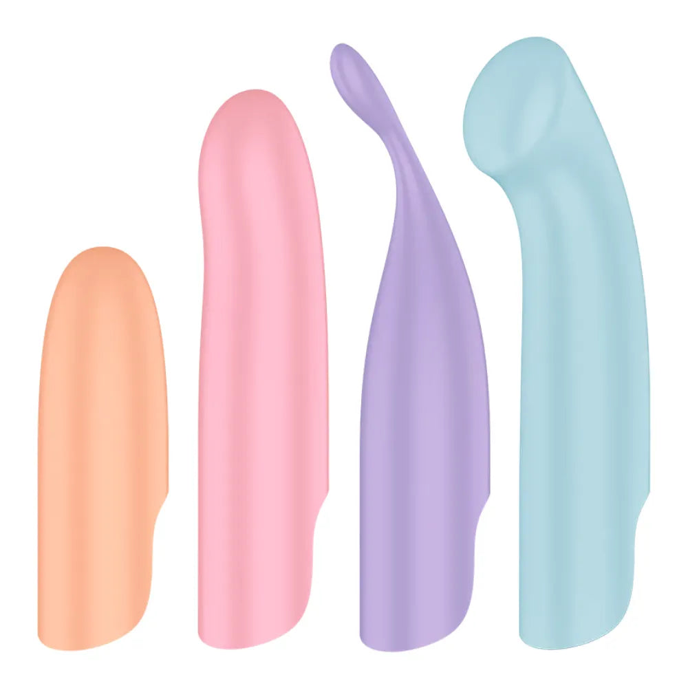 The Satisfyer Playful Four is a modular mini-vibrator set designed for those who like to vary their pleasures. It includes a motorized bullet base and four interchangeable soft silicone tips: G-spot, classic external stimulation, precision tip, and mini labial massager. This 4-in-1 concept offers a complete sensory exploration adapted to all desires.