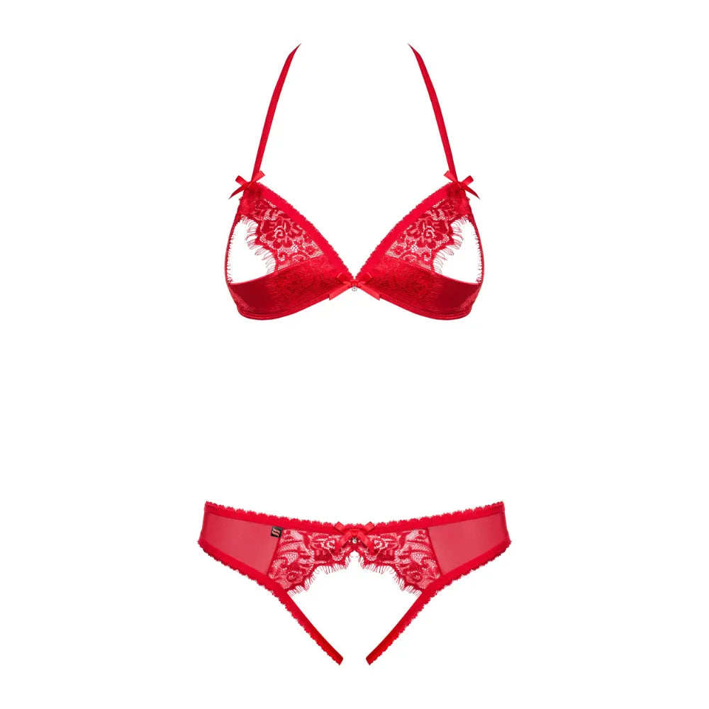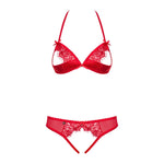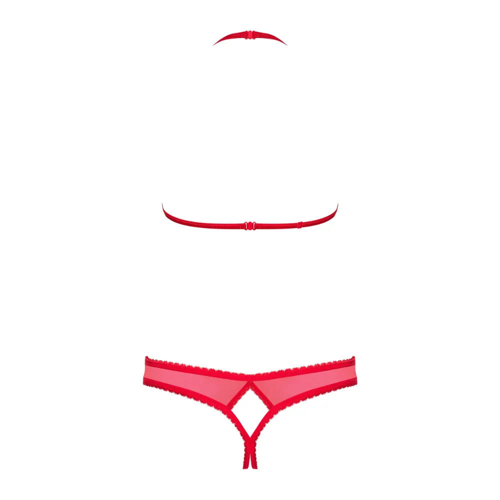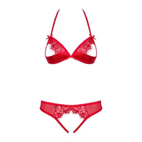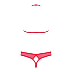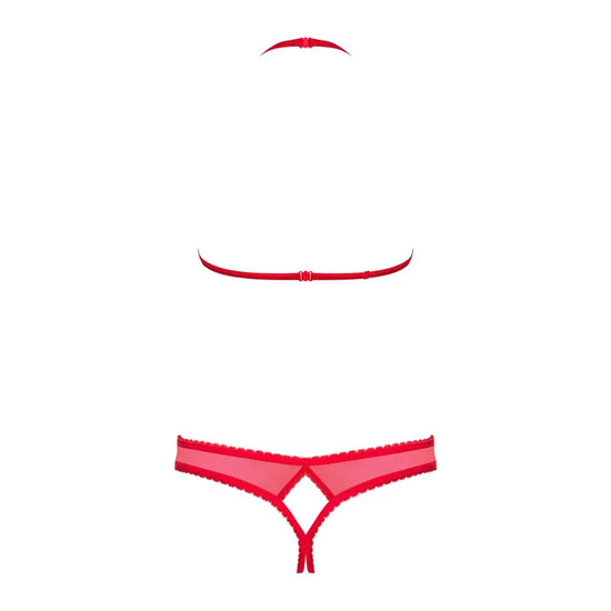 This captivating lingerie set in intense red features a cupped open bra and a daring open thong. Designed to awaken the senses, this set offers a provocative and ultra-feminine look, perfect for evenings where audacity reigns supreme.