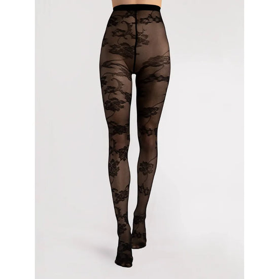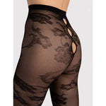 Fiore's Wild Dream 30 den semi-sheer tights feature a refined floral design and a decorative opening at the bottom. This style combines romantic charm with contemporary boldness with a captivating "secret garden" pattern across the entire leg and a subtly revealed back seam effect.