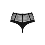Obsessive's Sharlotte briefs restore the high-waisted silhouette to its former glory. Their black lace caresses the skin with refined elegance, while their enveloping cut gently sculpts curves. A style designed to subtly reveal the silhouette, where every detail exudes refinement and comfort.