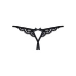 This piece is an ultra-sensual black thong, fully open at the crotch for confident seduction. Crafted from delicate lace and adorned with satin details, it offers a look that is both provocative and refined, perfect for unforgettable intimate moments.