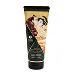 Shunga's Delectable Massage Cream is designed to offer a silky texture that glides easily over the skin, leaving a cooling sensation without any greasy aftertaste. Its unique formula is edible, allowing for indulgent kisses all over the body, and is available in several exquisite flavors such as Pear & Green Tea, Exotic Fruits, Strawberry Sparkling Wine, Raspberry Emotion, Intoxicating Chocolate, and Almond Sweetness.