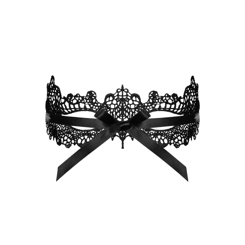 One look... and everything ignites. Obsessive's A701 mask is the perfect accessory to spark your imagination. Sculpted from delicate black guipure lace, it blurs the contours of your face to better reveal its intensity. Tied at the back with a satin ribbon, it's perfect for role-playing, costume parties, or your most intimate moments.