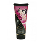 Shunga's Delectable Massage Cream is designed to offer a silky texture that glides easily over the skin, leaving a cooling sensation without any greasy aftertaste. Its unique formula is edible, allowing for indulgent kisses all over the body, and is available in several exquisite flavors such as Pear & Green Tea, Exotic Fruits, Strawberry Sparkling Wine, Raspberry Emotion, Intoxicating Chocolate, and Almond Sweetness.