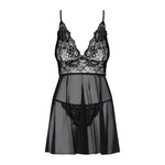 When night falls gently, the Idillia babydoll by Obsessive becomes its most beautiful secret. Fluid, sensual, and delicately crafted in lace, it creates a halo of irresistible charm around you. Every detail is designed to flatter the silhouette while inviting the surrender of the senses.