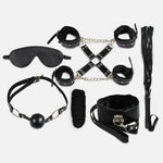 The Secret Play 8-Piece Black BDSM Kit is a complete set designed to explore bondage and domination play safely.